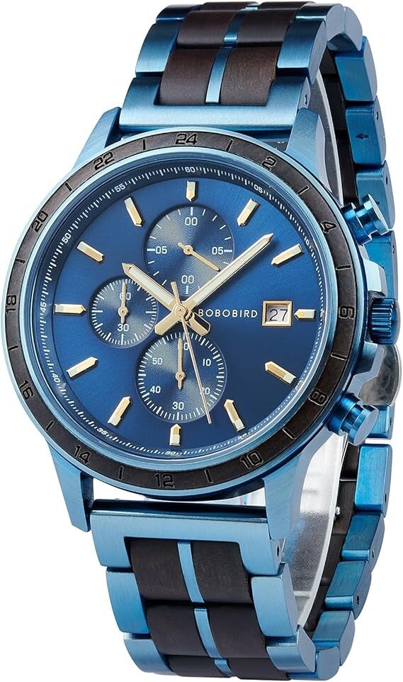 Orologio da Uomo Bobo Bird con Quadrante Blu e Dettagli in Legno - Eleganza e Stile Unico