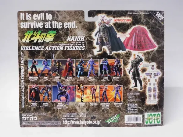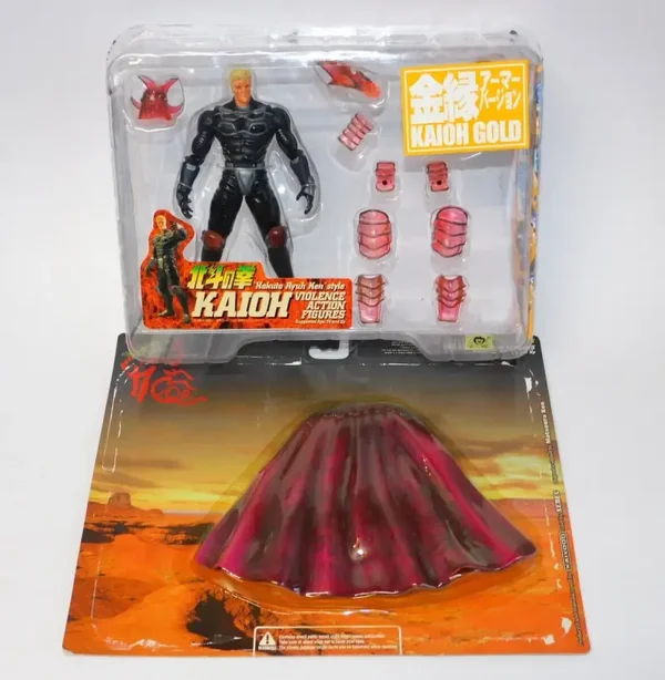 "Entra nel mondo post-apocalittico di Hokuto No Ken (Ken il Guerriero) con questa eccezionale e rara action figure di Kaioh (Kaiō), il potente e spietato generale di Shura, noto come il "Demone Magico". Questa versione, denominata "Gold Armor Version" (金綠アーマー バージョン), cattura perfettamente l'imponenza e la malvagità del personaggio.
