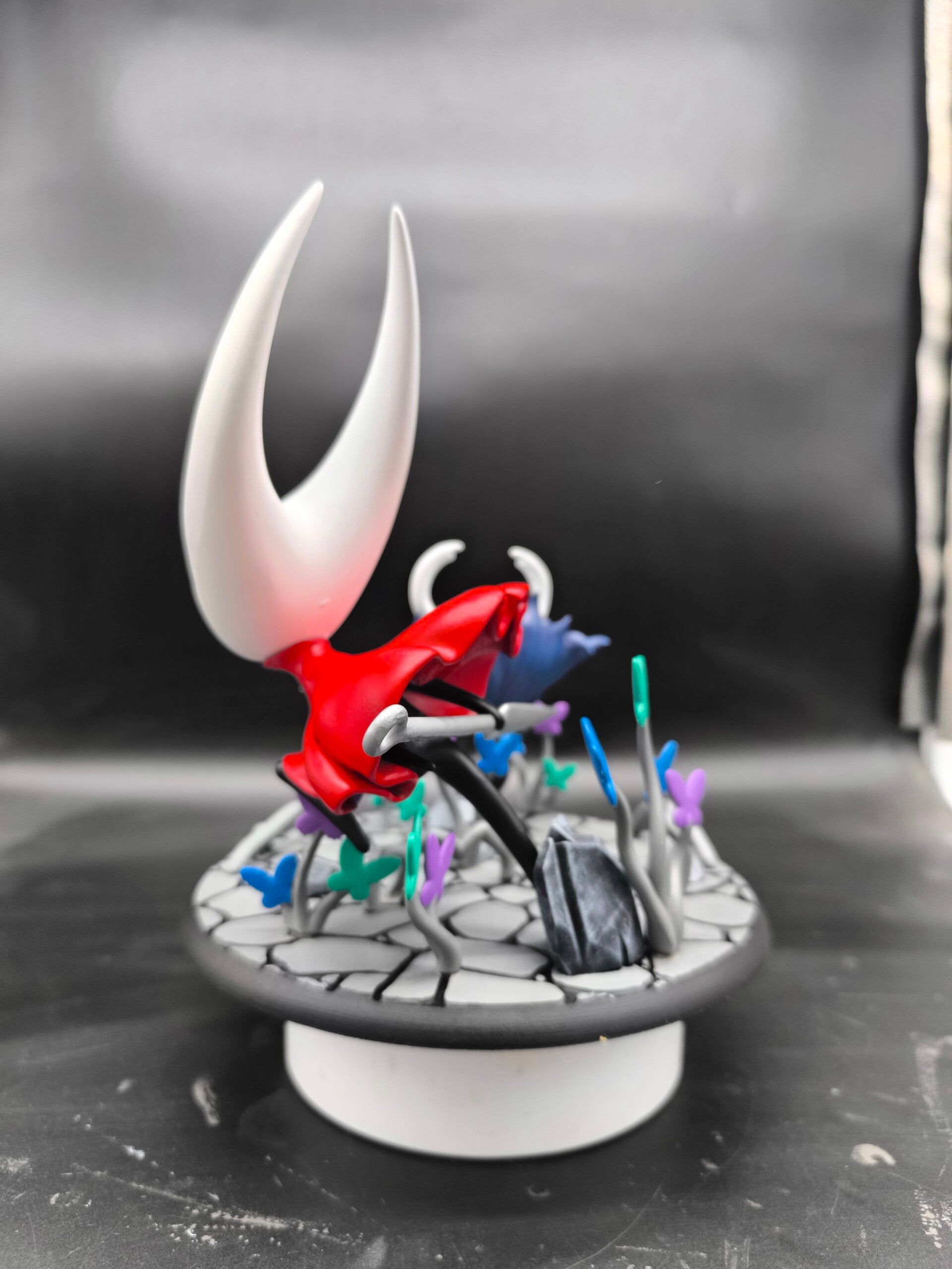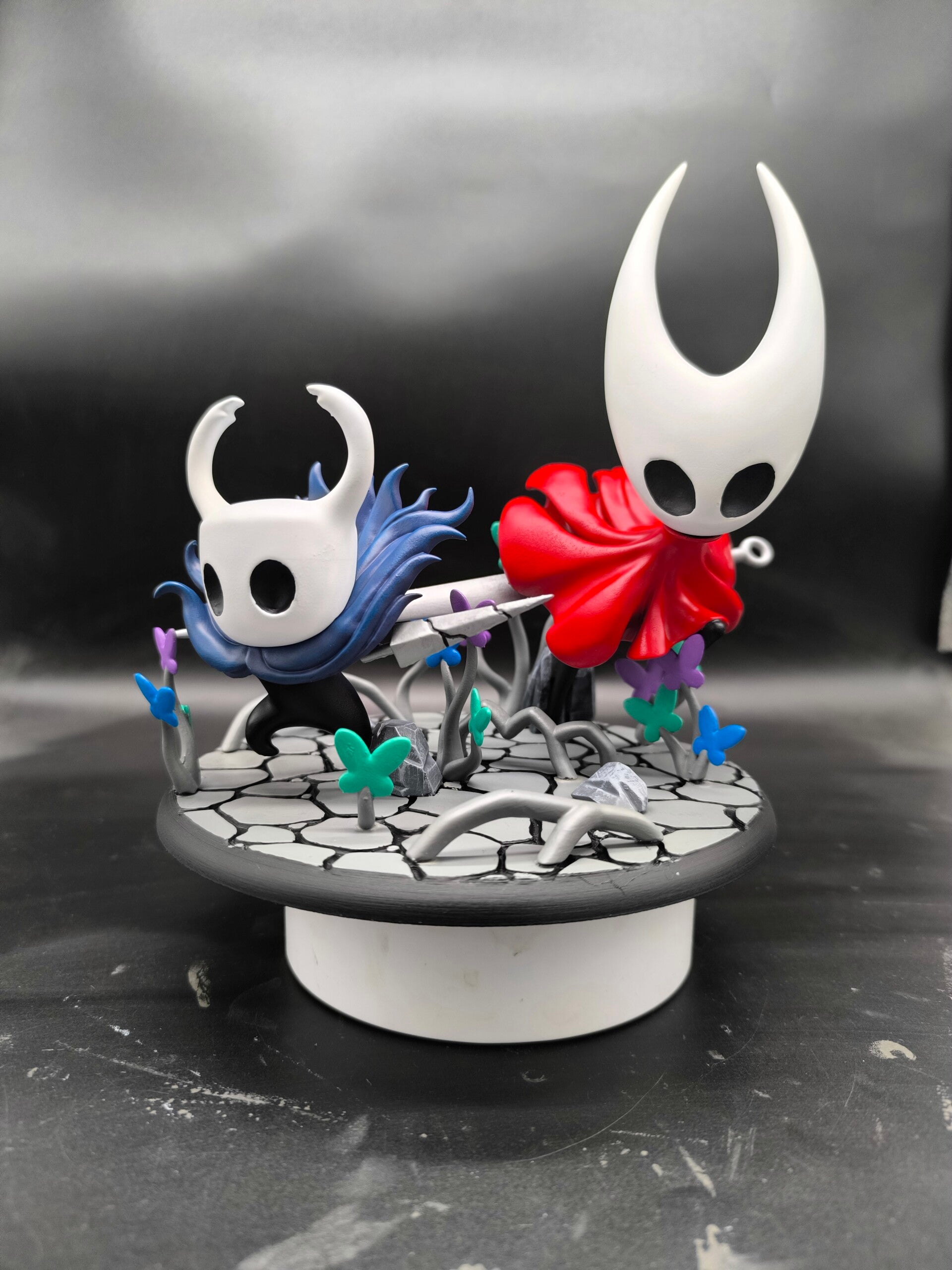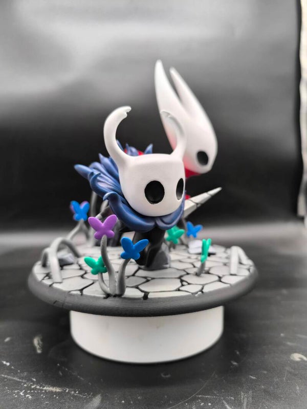 Ogni pezzo è stampato in 3D con resina di alta qualità e dipinto a mano. I dettagli sono minuziosi, dalla lucentezza delle maschere all'eleganza del mantello di Hornet e al tessuto dell'Aculeo del Cavaliere. Le farfalle del Greenpath, dai colori vivaci, aggiungono un tocco di magia.
